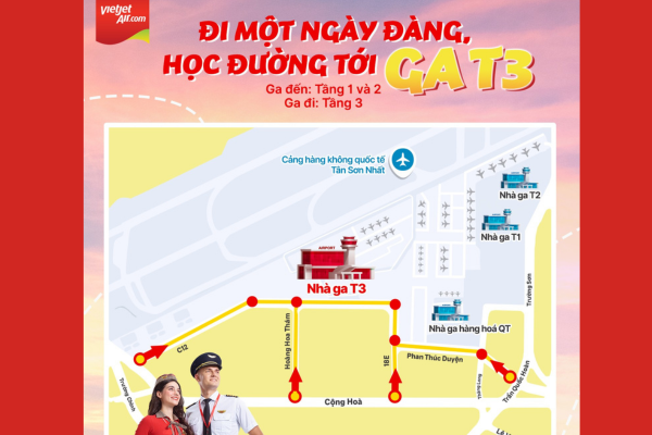 Từ khu vực phía Đông thành phố: Di chuyển theo Phạm Văn Đồng → Trường Sơn → Trần Quốc Hoàn → đến Nhà ga T3.